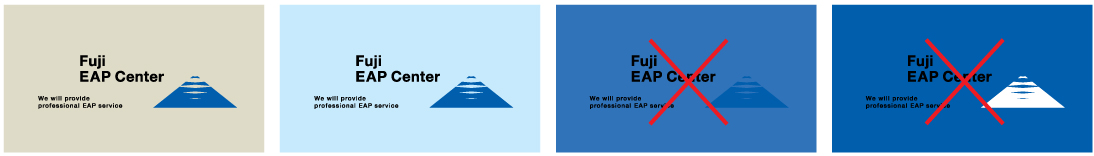 ロゴマークのシンボルカラーの使用例と禁止例です。